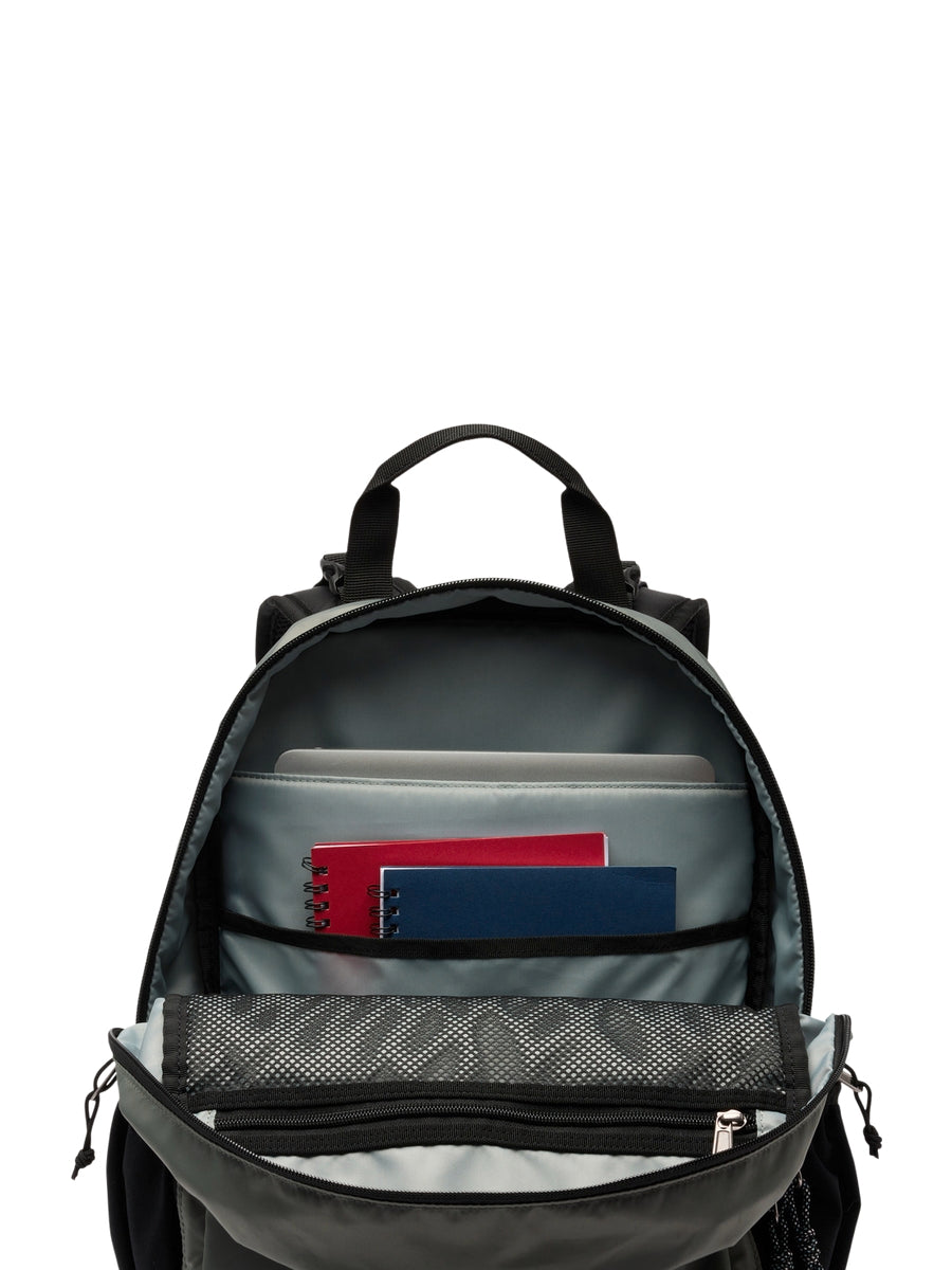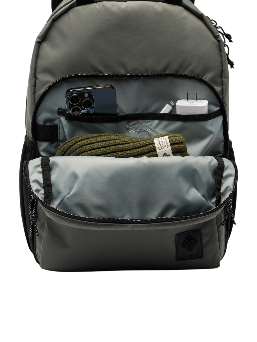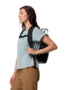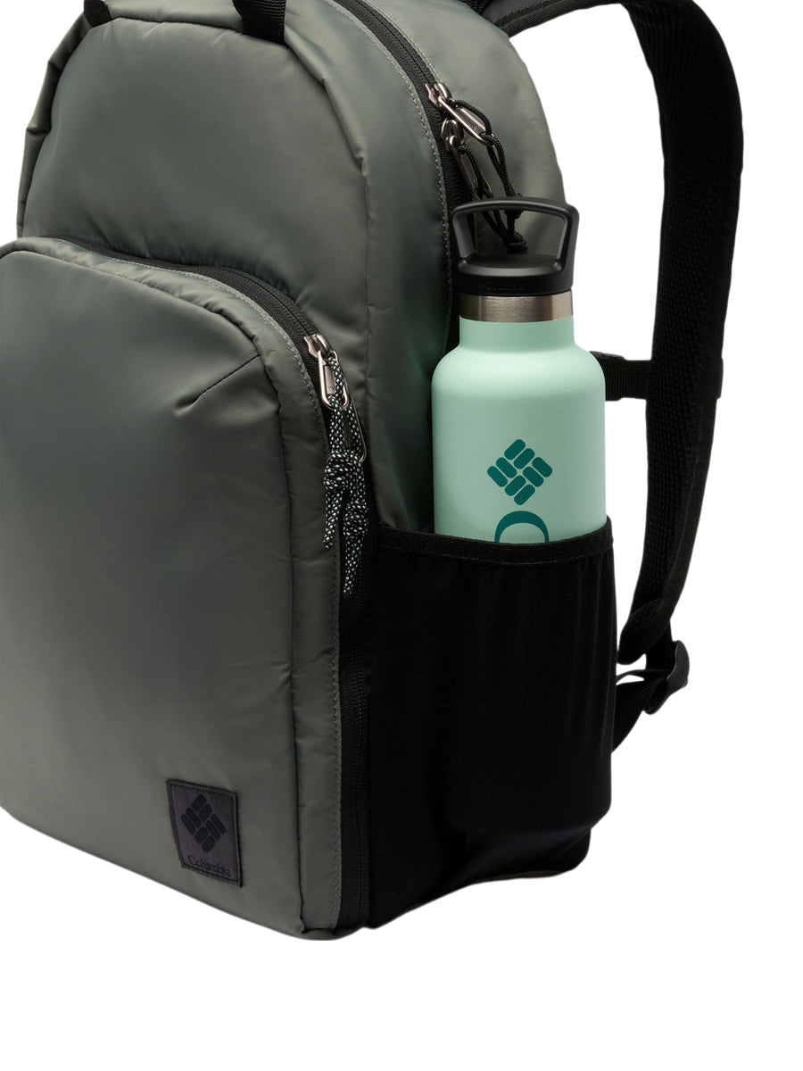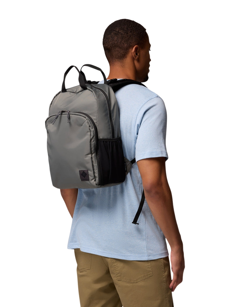 FEATURES: Omni-Shield™ repels moisture and resists stains by preventing liquids from absorbing into fast-drying yarns, so you stay clean and dry in damp, messy conditions Water-resistant zipper keeps light moisture out Padded laptop compartment Front pocket for easy organization Two stretchable side water bottle pockets Removable sternum strap for support Fits a 13" / 33 cm laptop Capacity: 1,098 cu. in. / 18L Dimensions: 15.3" x 10.6" x 4.7" / 39cm x 27cm x 12cm Weight: 1.3 lb 21.3 oz / .60 kg 605g Uses: Everyday