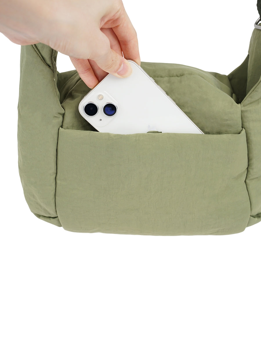 This lightweight and durable all day shoulder bag features an exterior pocket for a water bottle and multiple internal pockets, including a dedicated pocket for AirPods, making it easy to organize your essentials. Whether you carry it as a shoulder bag or a crossbody, you can effortlessly switch between styles, making it your ideal companion for daily outings.