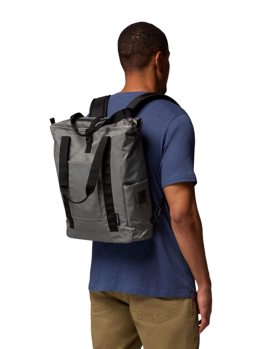 FEATURES: Omni-Shield™ repels moisture and resists stains by preventing liquids from absorbing into fast-drying yarns, so you stay clean and dry in damp, messy conditions Multi-function straps enable backpack, hand, or over the shoulder carrying ability Water-resistant zipper keeps light moisture out Padded laptop compartment Compression straps cinch down to reduce bulk External security pocket for valuables Side access water bottle pockets Fits a 15" / 38.1 cm laptop Capacity: 1,220 cu. in. / 20L Dimensions: 16.5" x 12" x 5" / 42cm x 30cm x 12.5cm Weight: 1.25 lb 20 oz / .57 kg 570 g Uses: Everyday