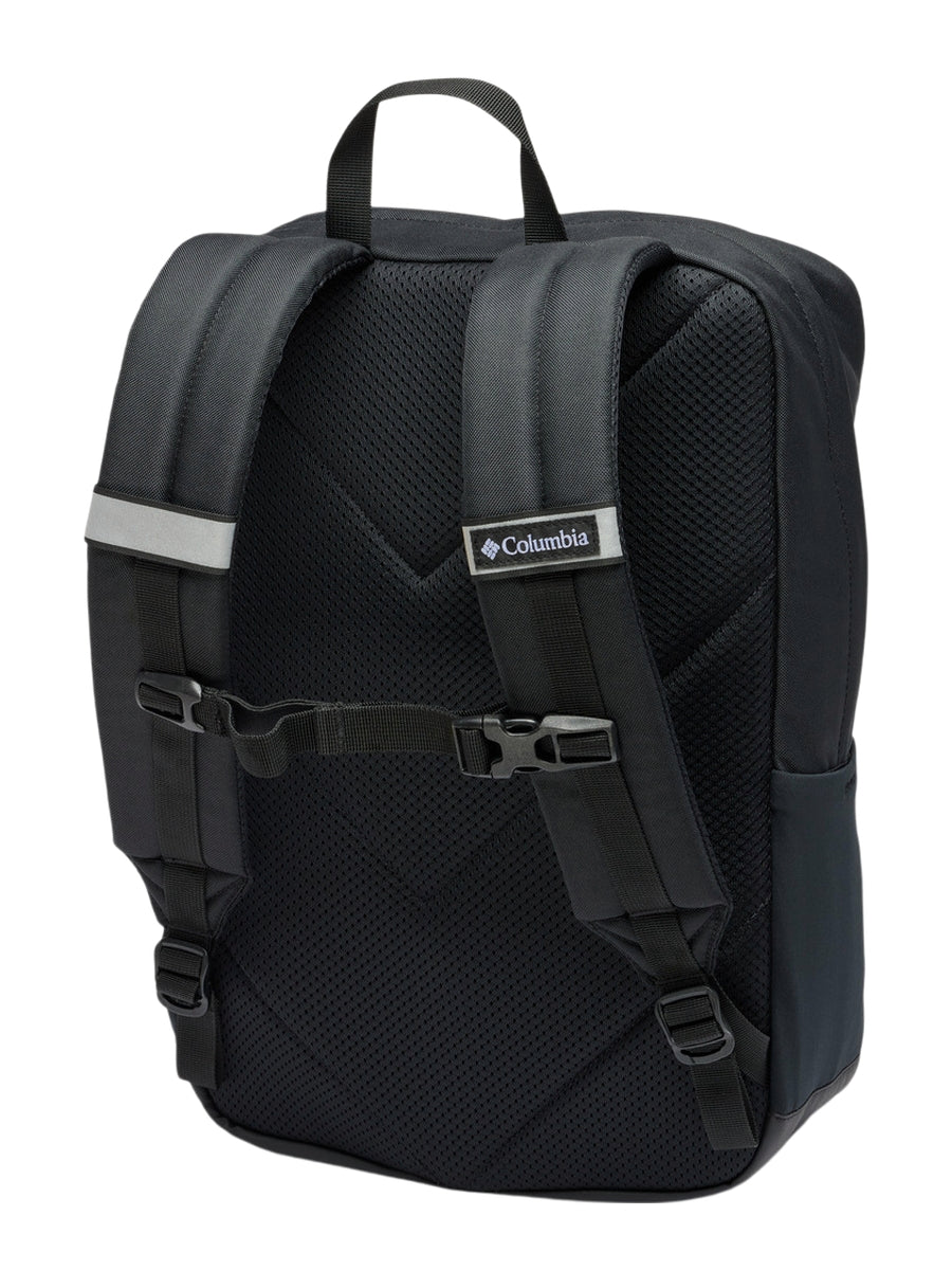 FEATURES: External security pocket Two front accessory pockets Two water bottle pockets Comfort padded backpanel Reflective safety accents Adjustable sternum strap Key clip Breathable and padded shoulder straps