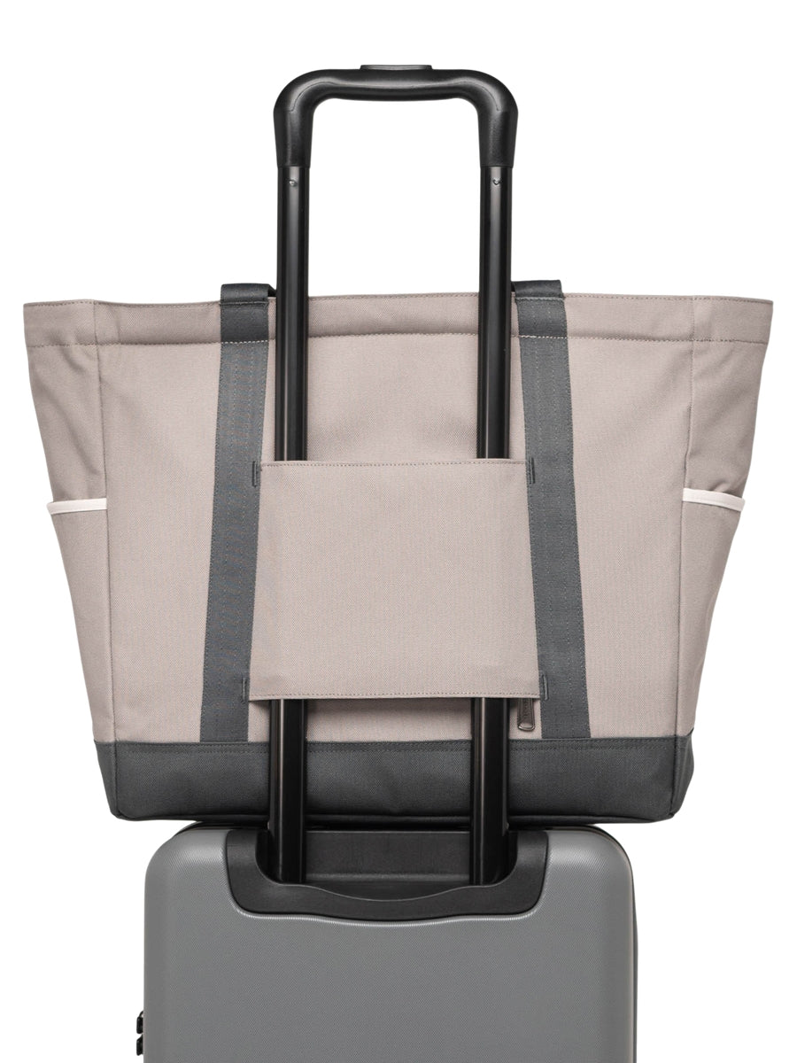 A timeless tote. Made with recycled fabrics and our signature diamond detail this large tote is packed with organizing features that carry you through work travel and everyday journeys.