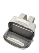 INTERIOR FEATURES - RFID blocking material to protect your personal information - Inside organisation including paper holder, cable pocket and Binder compliant size. - Dedicated laptop compartment of 15.6in with secure locking zippers. EXTERIOR FEATURES - Rain cover with reflective print. - Open side pocket for bottles/umbrella. Zipped side pocket for small belongings - Ergonomic back panel with integrated safety pocket and smart sleeve - Locking Zippers