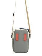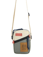 COLOR: BONE WHITE/BEETLE DIMENSIONS L: 13 CM W: 3 CM H: 20 CM WEIGHT 0.13 kg CAPACITY 1 L MATERIAL: 400D 100% Recycled Nylon / 1000D 100% Recycled Nylon FEATURES: - Adjustable webbing shoulder strap - Front diagonal zippered pocket - Bike light attachment loop - Internal org pocket