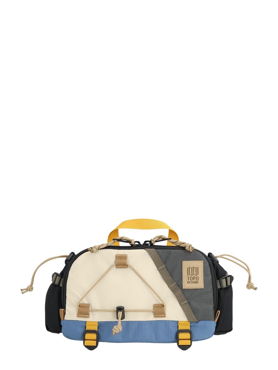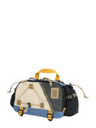 COLOR: STONE BLUE/BONE WHTE DIMENSIONS L: 30 CM W: 6 CM H: 20 CM WEIGHT 0.35 kg CAPACITY 4.4 L MATERIAL: 200D 100% Recycled Nylon Ripstop FEATURES: - Spacious zippered main compartment - Zippered accessory pocket - Two stretch water bottle pockets with cord lock - Bungee pass through with cord lock - Adjustable gear straps - Front daisy chain - Grab handle - Side zipper pocket - Side pass through - Compression molded back panel - Adjustable belt with side cinch