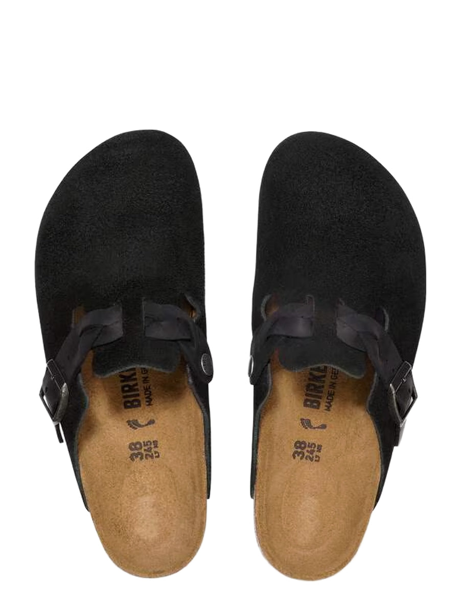 The BIRKENSTOCK Boston is a veritable classic that can easily be worn all year round. The Boston has a legendary status thanks to its sophisticated, individually adjustable design. Here, the model comes with a special detail: the straps have a braided pattern, making them the perfect match for fashionable boho styles. The upper is made from especially soft suede which hugs the foot like a second skin.