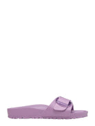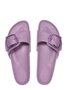 This is a new and modern interpretation of the BIRKENSTOCK classic Madrid. This version features our popular Big Buckle made from a stainless synthetic material and makes an impression with its durability and minimalist design. Modeled on the cork sandal, it is made from the ultra-lightweight and highly flexible synthetic material EVA. The high-quality, odor-neutral EVA has been tested for harmful substances and combines numerous positive attributes: it is very light, highly elastic, shock-absorbent, water-resistant, and skin-friendly.