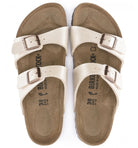 The BIRKENSTOCK Sydney proves that fashion and functionality can go hand in hand. With its two simple straps, it’s a real hit with women who want both high fashion and comfort. Here, we see the sandal with a silky sheen finish. The color-coordinated outsole and the buckles round off the shoe’s look of sophistication. The upper is made from the skin-friendly, hard-wearing synthetic material Birko-Flor® with a silky sheen.