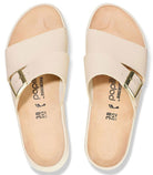 - Contoured footbed conforms to the shape of your foot and features pronounced arch support, a deep heel cup, and roomy toe box