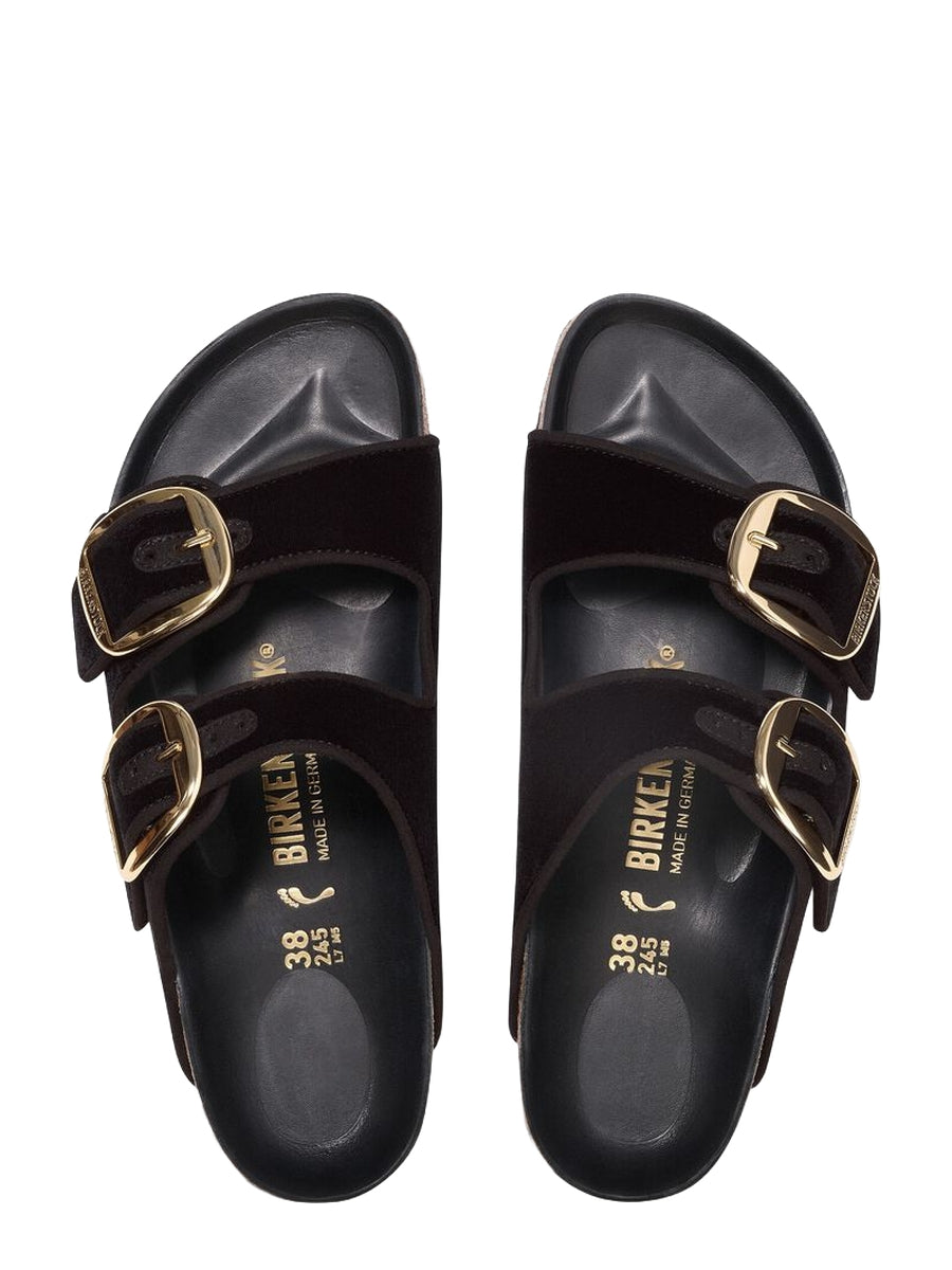 The BIRKENSTOCK Arizona is a genuine classic that has been delighting both men and women for decades. This simple sandal with two straps stands for timeless design and has long held cult status thanks to its comfort factor. This version brings two popular designs together. It is made of fine velvet and boasts a big, elegant pin buckle. The exquisite footbed is fully lined with soft piumato leather, making it exceptionally comfortable.