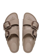 The BIRKENSTOCK Arizona is a genuine classic. Modeled on the cork sandal, this version is made from EVA. The high-quality, odor-neutral EVA has been tested for harmful substances and combines numerous positive attributes: it is very light, highly elastic, water-resistant, and skin-friendly and offers the comfort you have come to expect from BIRKENSTOCK. This version features our popular Big Buckle made from a stainless synthetic material and makes an impression with its durability and minimalist design.