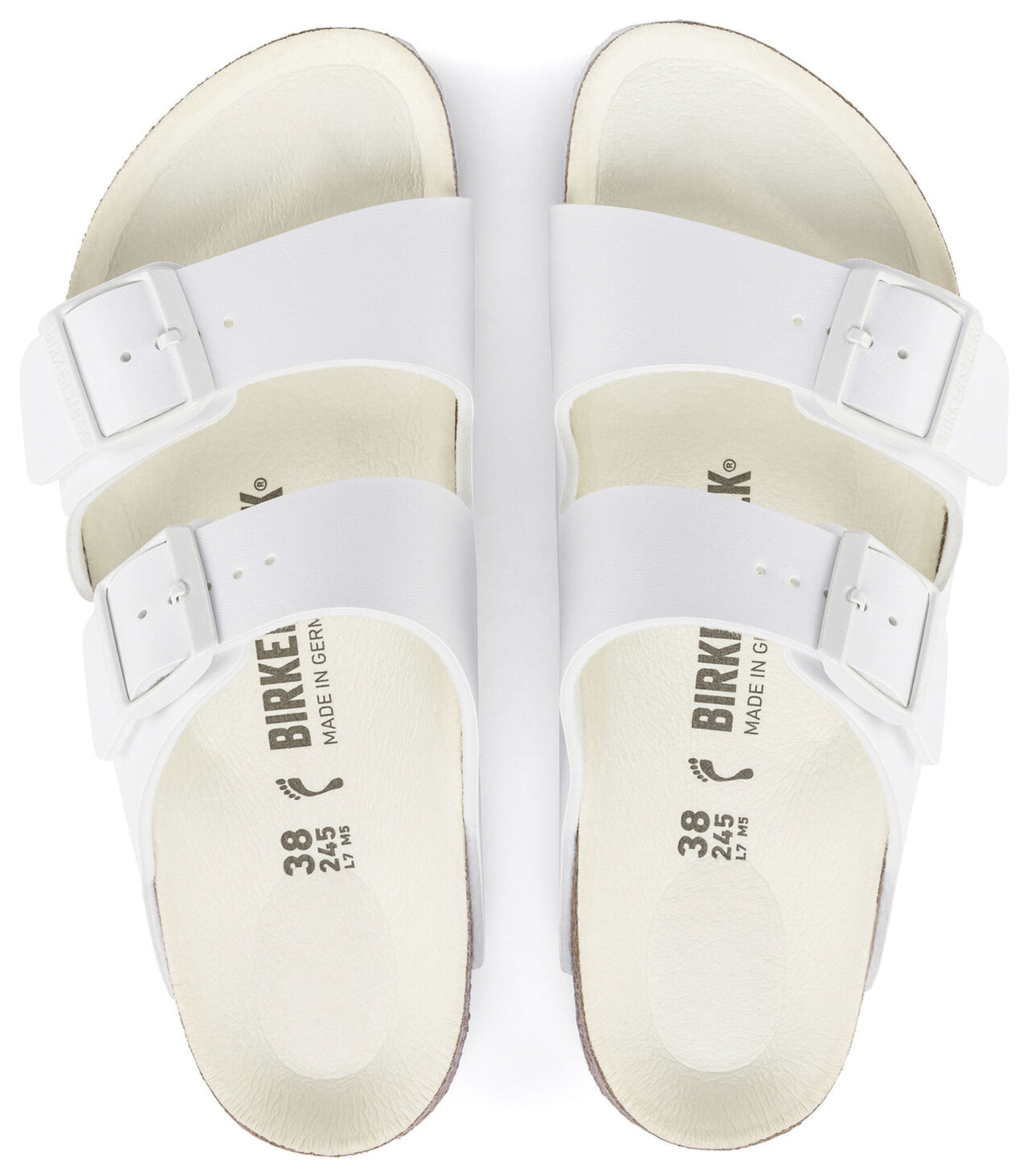 The legendary two-strap design from BIRKENSTOCK - the Arizona. Iconic style complemented with the signature comfort of the BIRKENSTOCK footbed. The color-coordinated microfiber footbed liner rounds off the shoe’s look of sophistication. The upper is made from the skin-friendly, hard-wearing synthetic material Birko-Flor®.