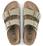 The BIRKENSTOCK Arizona is a genuine classic that has been delighting both men and women for decades. This popular sandal has been given an update in a new material, with a vegan version now available. It is entirely free of animal products, as verified by independent testing laboratories. The color-coordinated outsole rounds off the shoe’s look of sophistication. The upper is made from the skin-friendly, hard-wearing synthetic material Birko-Flor® in a sophisticated nubuck look which boasts a texture and color that could almost be mistaken for real leather.
