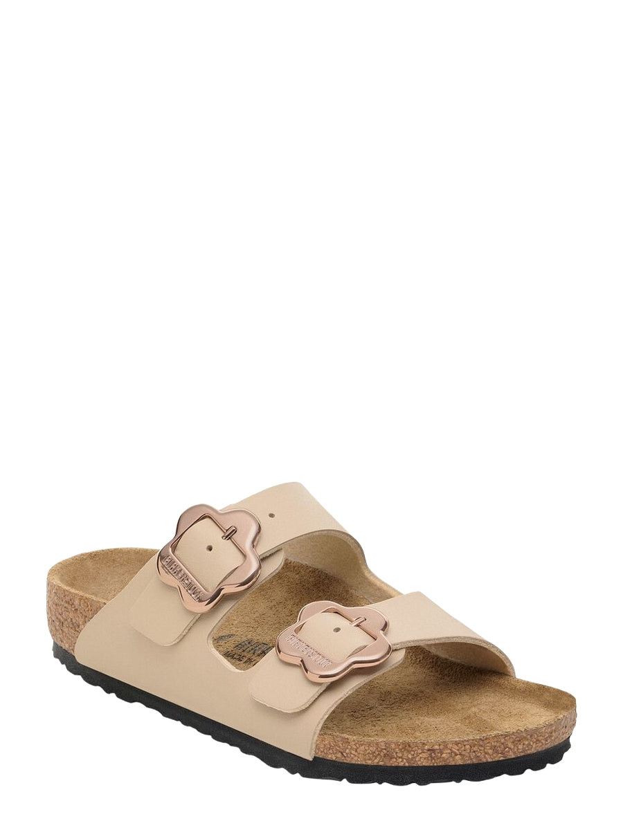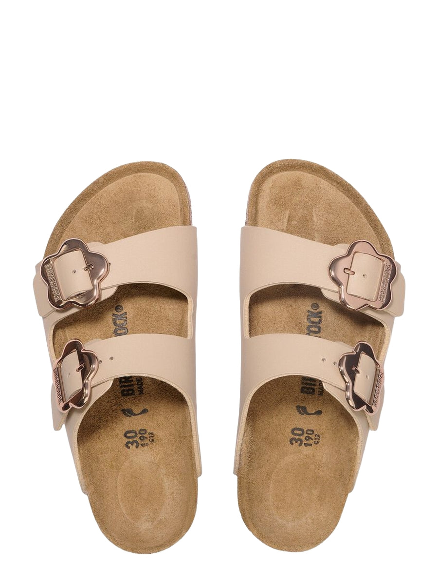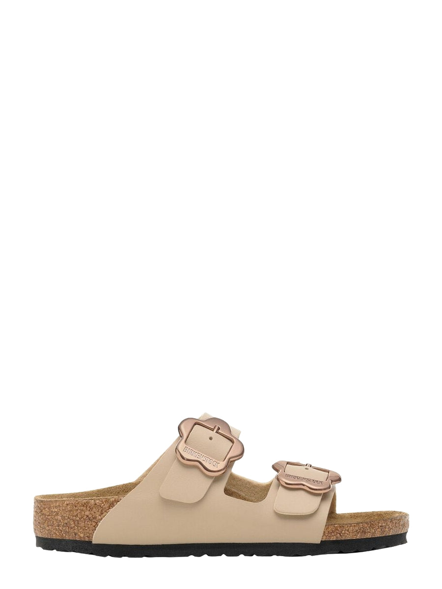 The BIRKENSTOCK Arizona is a genuine classic that has been delighting wearers with its timeless design for decades. The two-strap model fits kids’ feet perfectly – even during boisterous play! This version features fun floral buckles. The color-coordinated outsole rounds off the shoe’s look of sophistication. The upper is made from the skin-friendly, hard-wearing synthetic material Birko-Flor®.
