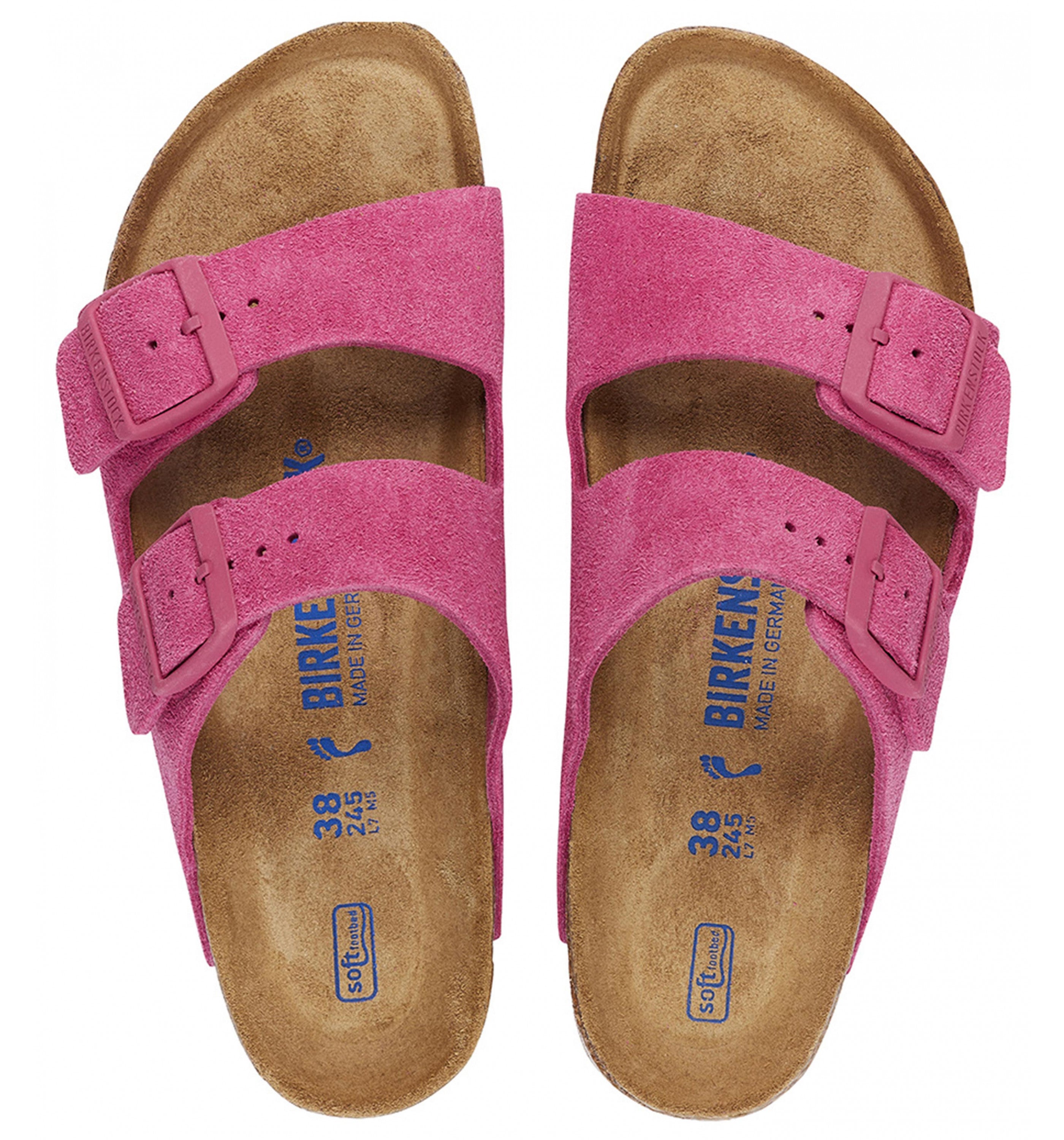 The legendary two-strap design from BIRKENSTOCK - the Arizona. Iconic style complemented with the signature comfort of the BIRKENSTOCK footbed. The tonal buckles with a textile feel and a matte design only add to this iconic style. With its additional foam layer, the soft footbed offers extra comfort all day long. The upper is made from soft suede.