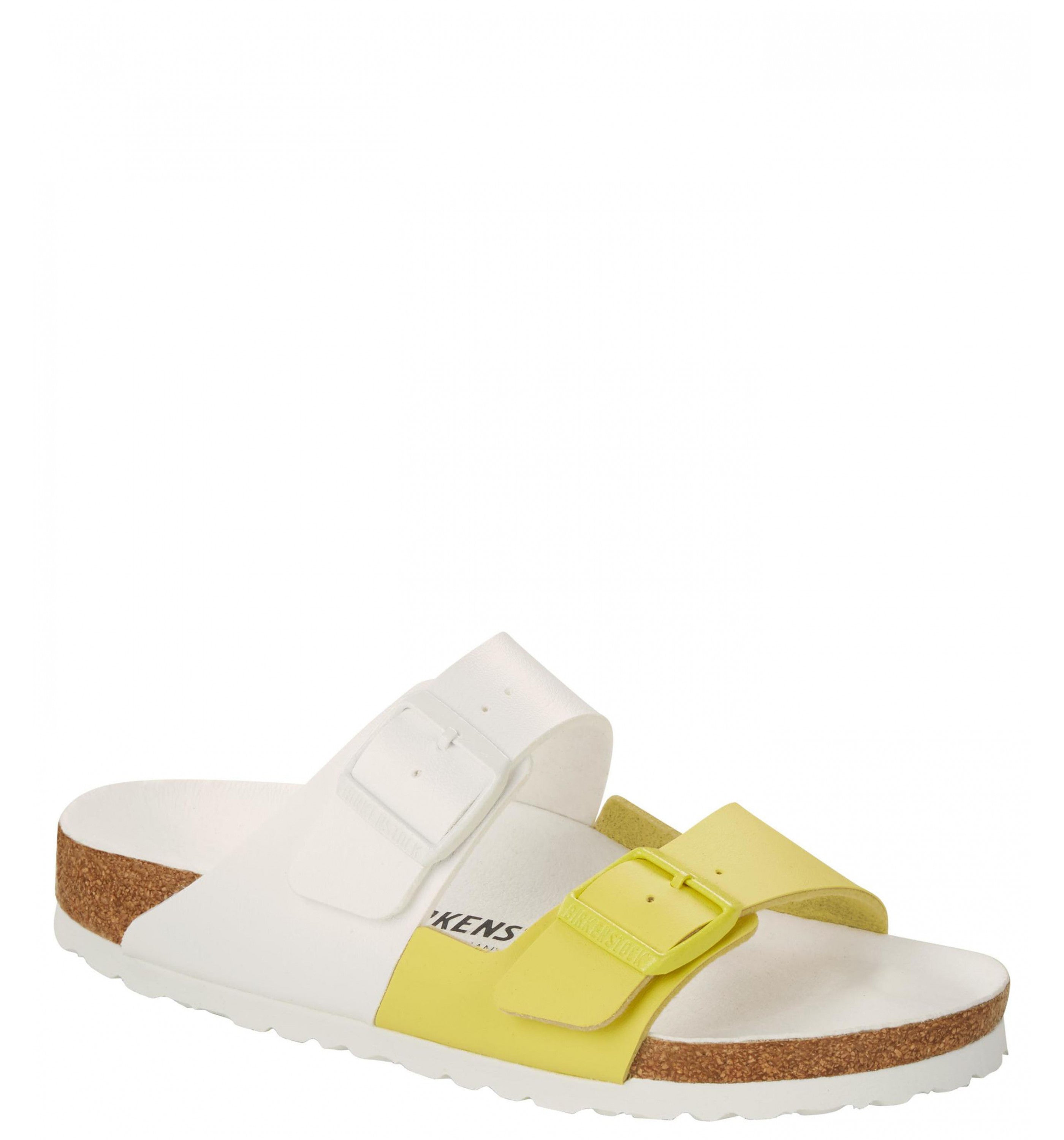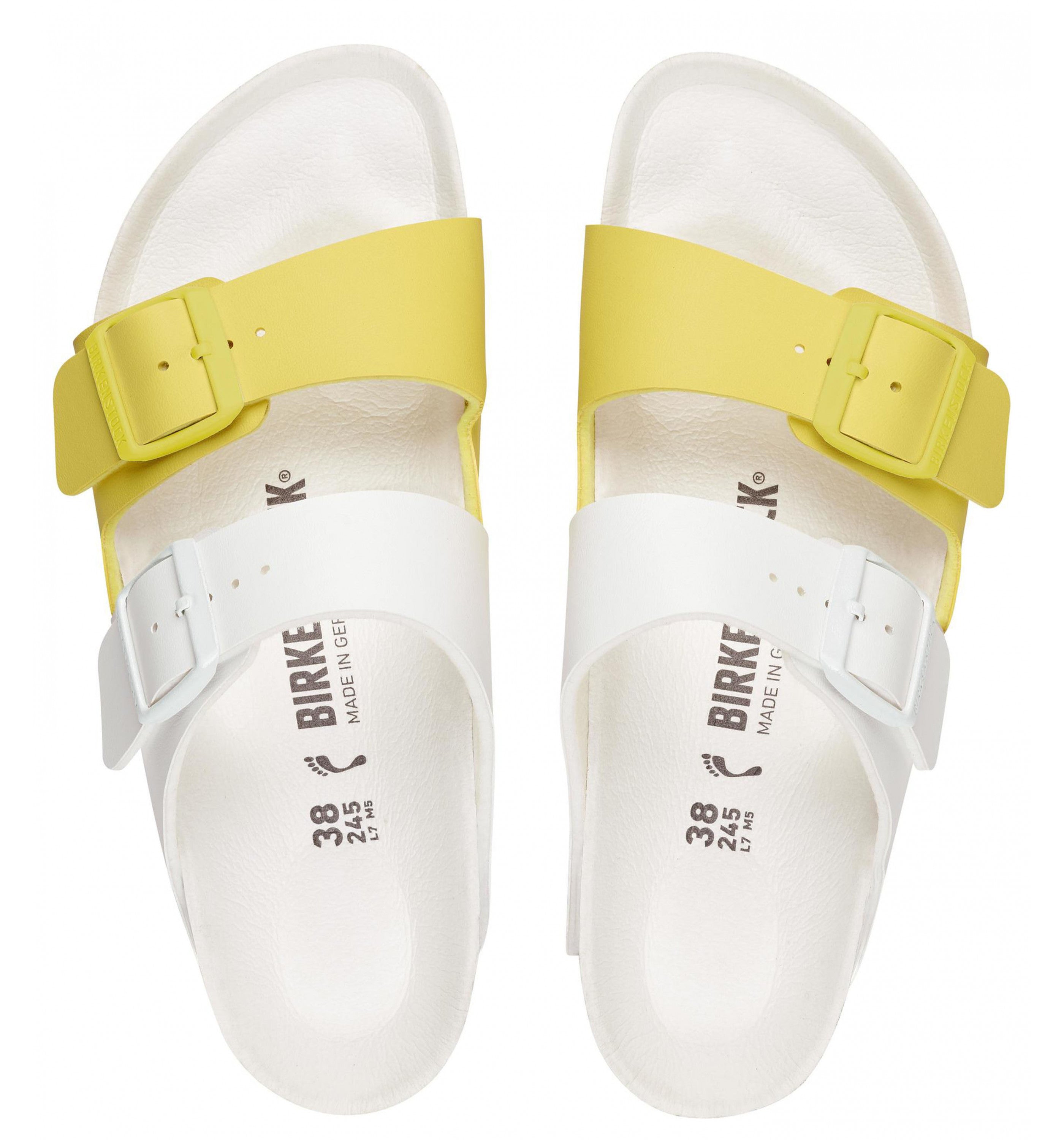The legendary two-strap design from BIRKENSTOCK - the Arizona. Iconic style complemented with the signature comfort of the BIRKENSTOCK footbed. The two-strap sandal features a two tone upper, as well as a tonal microfiber footbed liner and buckles for a sleek and athletic look. Shown in Birko-Flor.