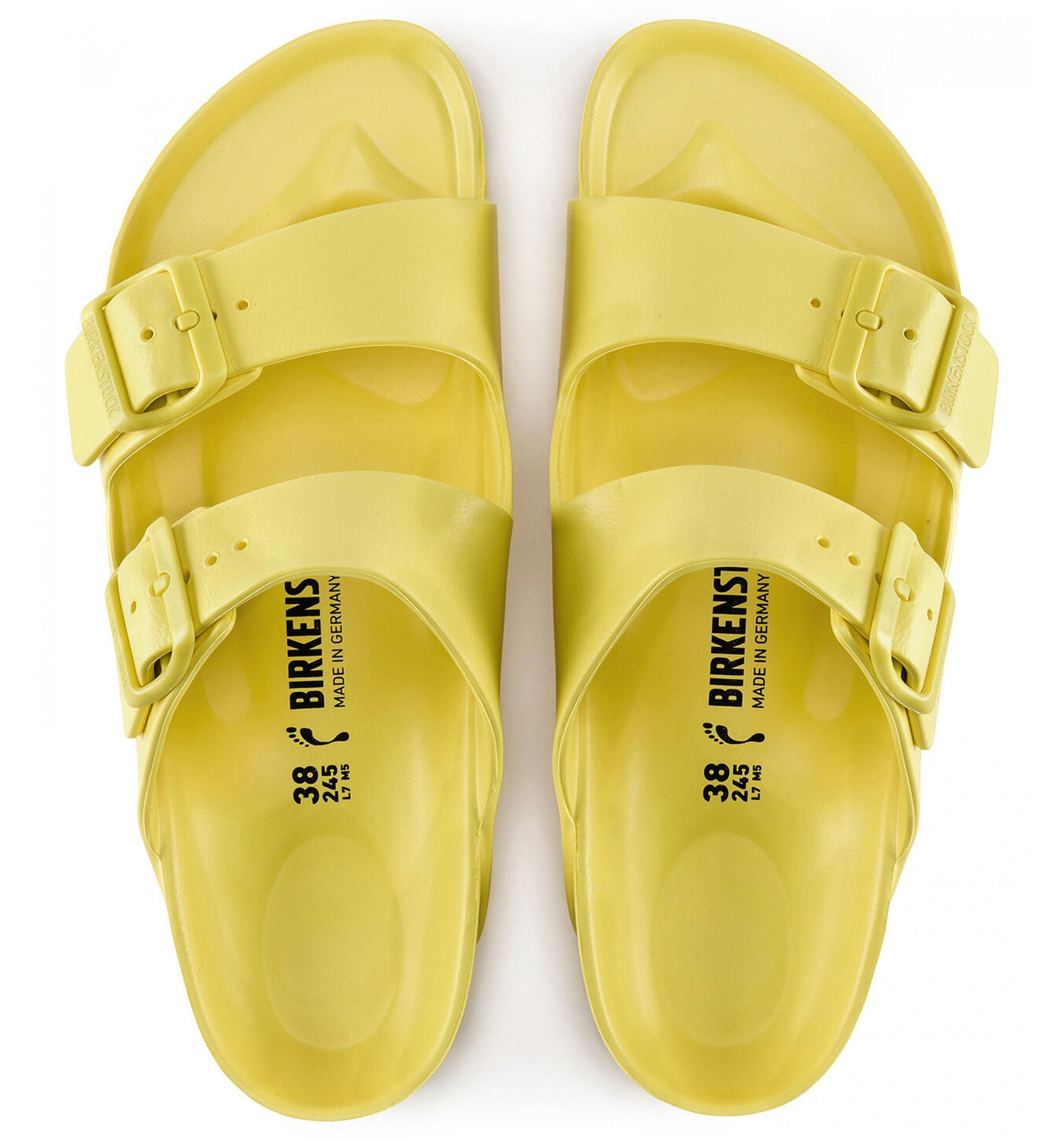 The legendary two-strap design from BIRKENSTOCK - the Arizona. Modeled on the cork original, this sandal is made from ultra lightweight and highly flexible EVA. These sandals are shock absorbing, waterproof, and skin-friendly. Wear them at the beach, in the garden, or around the gym and after workouts. It's the perfect addition to your classic BIRKENSTOCK sandals.