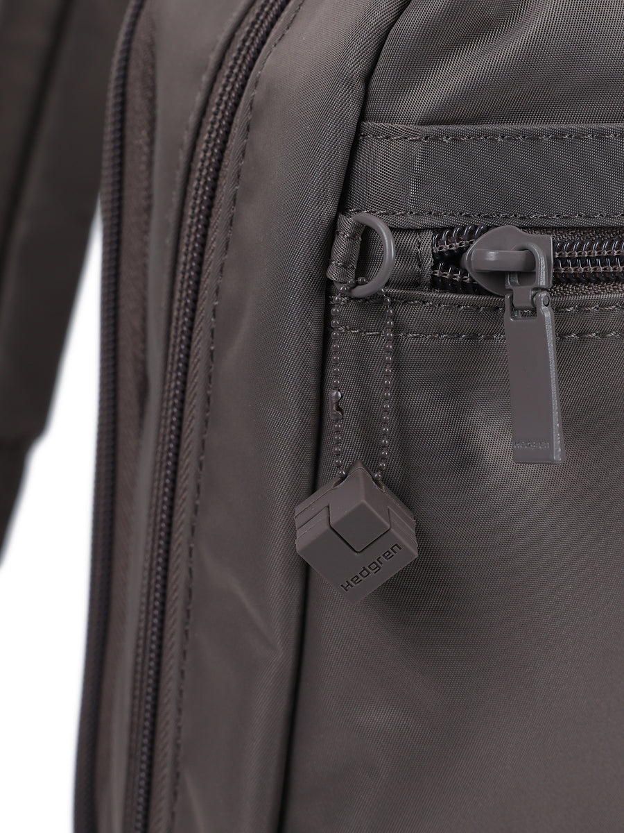 If you prefer your bags with angles then you’ll love our Ava Square Backpack. This sleek sophisticated bag features crisp clean lines that work perfectly with your minimalist look. The signature Hedgren cube and tone-on-tone hardware complete the elegant design perfectly. But it’s what’s on the inside that counts. This water-resistant backpack features a padded laptop compartment with space for your A4 files and a dedicated pocket for your phone. There is a secure RFID pocket as well as a side pocket for your water bottles and a fob for your keys. Locked zippers allow you to confidently carry your prized possessions on your back.{n}