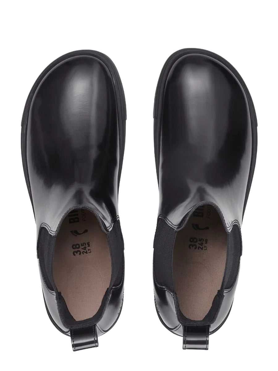 The Bend is BIRKENSTOCK's understated, mid-calf version of a Chelsea boot. The model has a flat sole and a simple yet elegant design that makes it versatile and timeless. The color-coordinated outsole rounds off the shoe's look of sophistication. The upper is made from high-quality natural leather with a shiny patent coating.