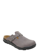 The BIRKENSTOCK Boston is a veritable classic that can easily be worn all year round. It has a legendary status thanks to its sophisticated, individually adjustable design. The sporty Adventure Crosstown version is designed for BIRKENSTOCK fans who are active and looking for an experience. The polyurethane sole is affixed to the footbed in two layers and therefore offers maximum flexibility, grip, and durability. The upper is made from extra thick, oiled nubuck leather with an open-selvage finish.