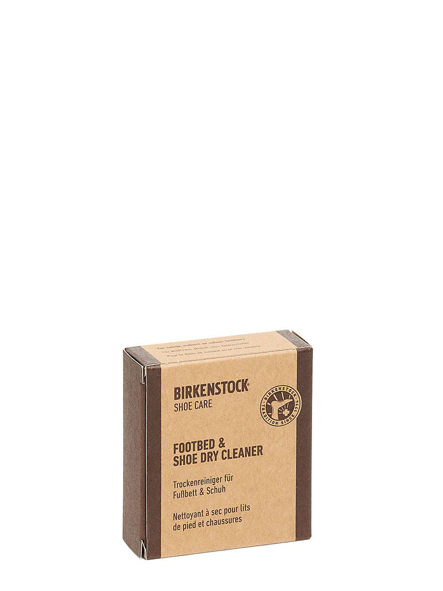 - The BIRKENSTOCK Footbed & Shoe Dry Cleaner has a firm crepe brush on one side to remove coarse dirt or stains. The other softer side can be used to fluff up the fibers of the suede or nubuck leather.