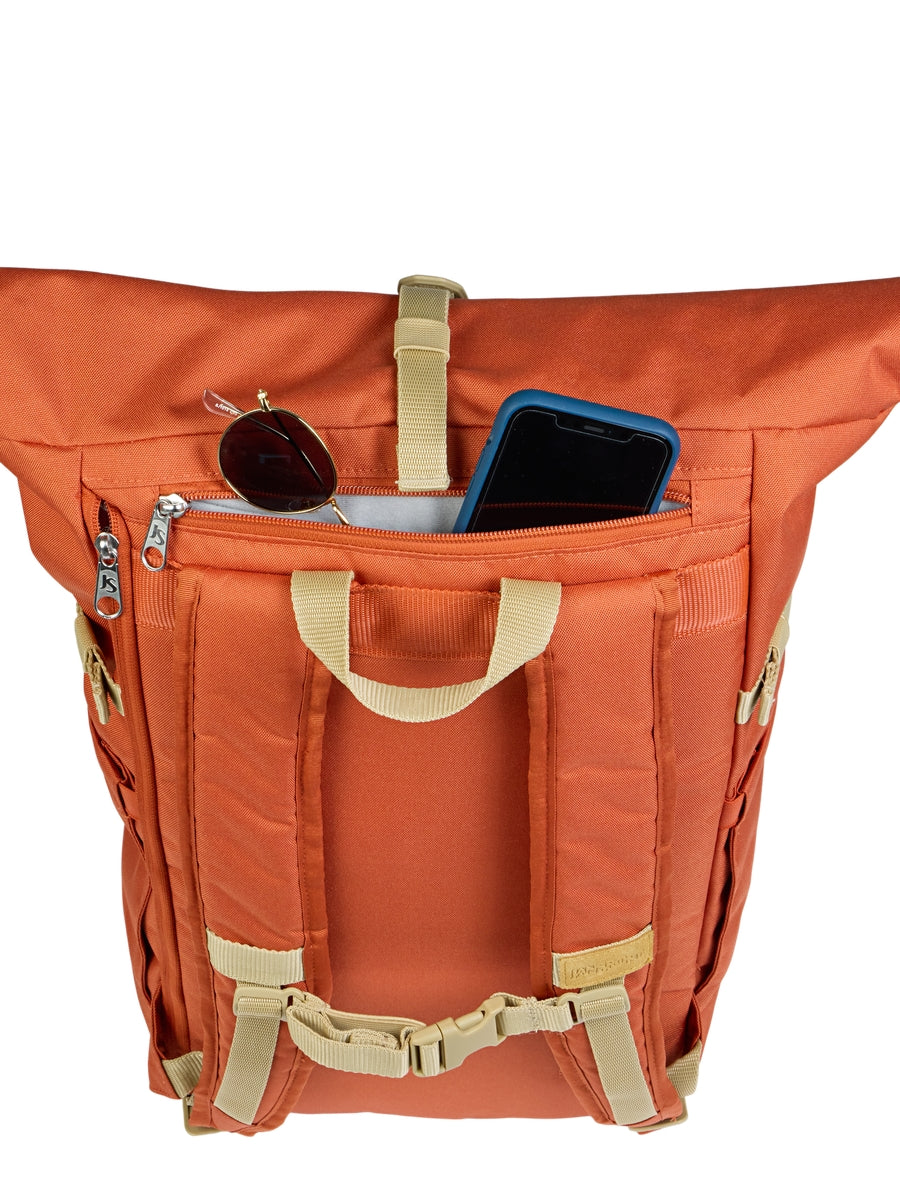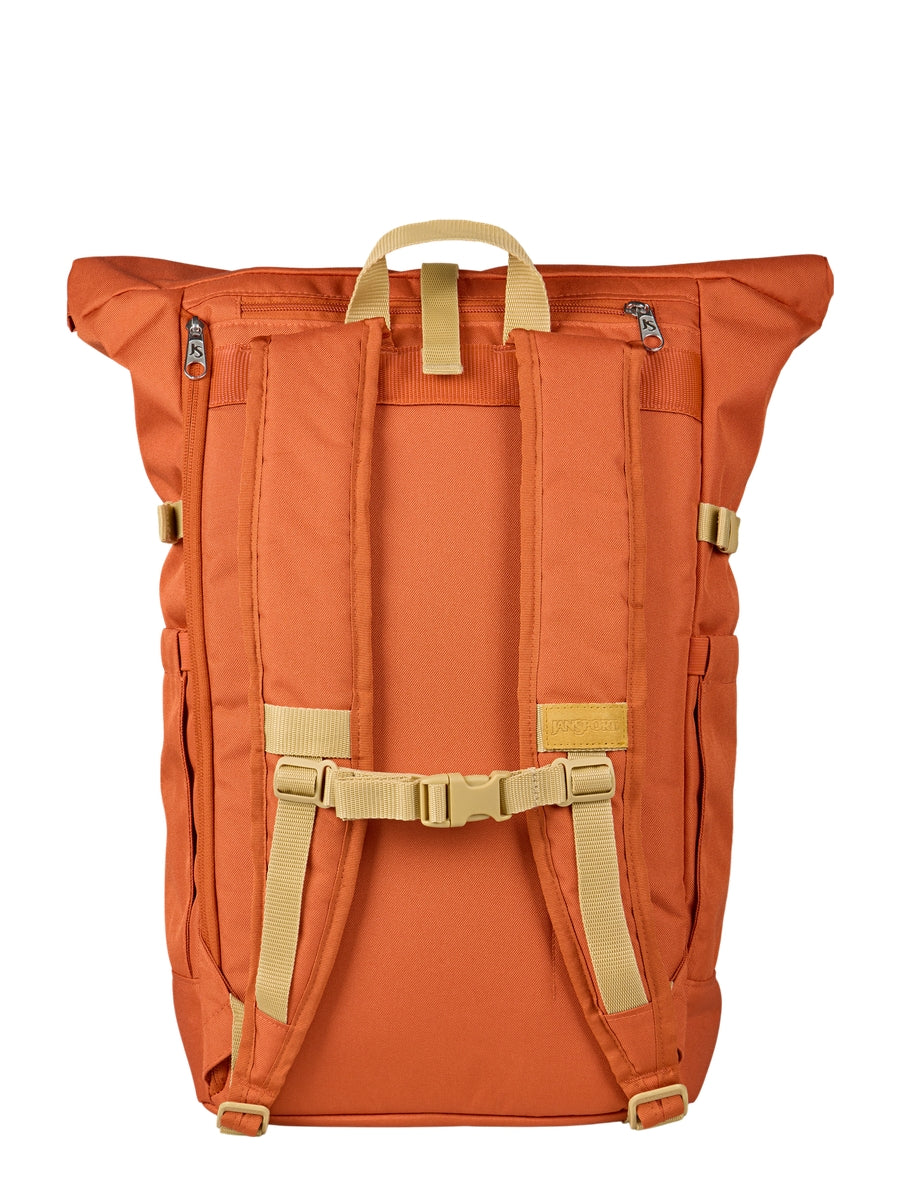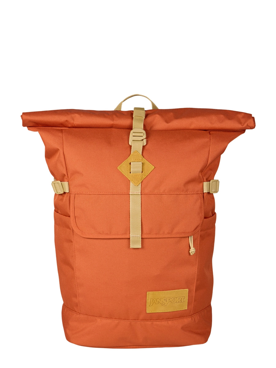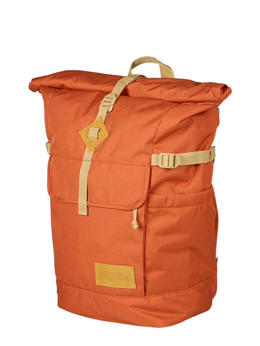 The JanSport Hatchet Rolltop backpack combines versatility and durability with a 31L capacity, padded 15" laptop sleeve, and expandable water bottle pockets. Designed for comfort and organization, it features padded straps, multiple zippered compartments, and rugged 600D polyester with suede trims—perfect for everyday adventures.