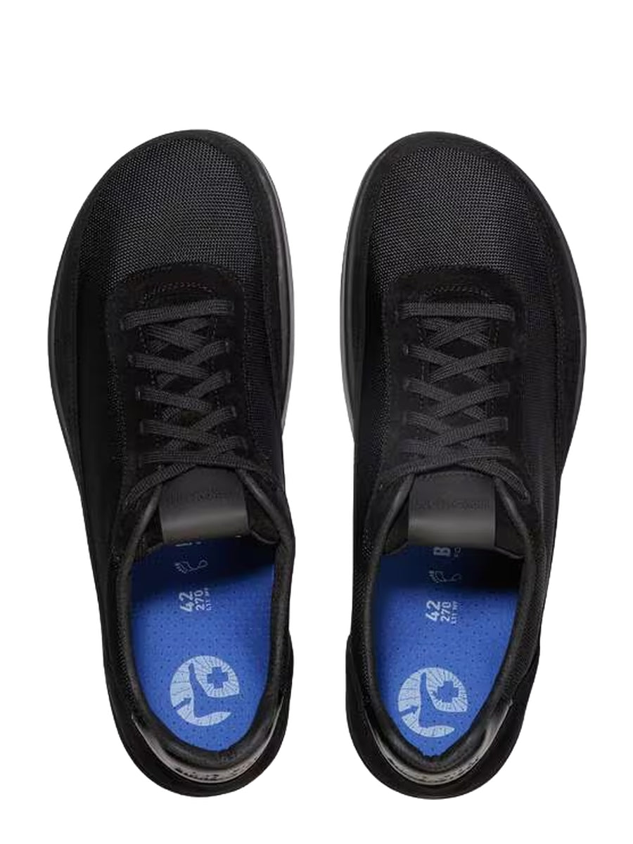 The BIRKENSTOCK Honnef City is a sporty sneaker characterized by a retro running shoe shape. Its simple, urban design makes it just the thing for a modern and sporty everyday look. The comfy and light Deep Blue Footbed makes the shoe a perfect 24/7 all-rounder, especially on long and active days. Perfect for your next holiday, extensive walks, or city trips. The upper is made from an attractive combination of hard-wearing nylon and high-quality suede.
