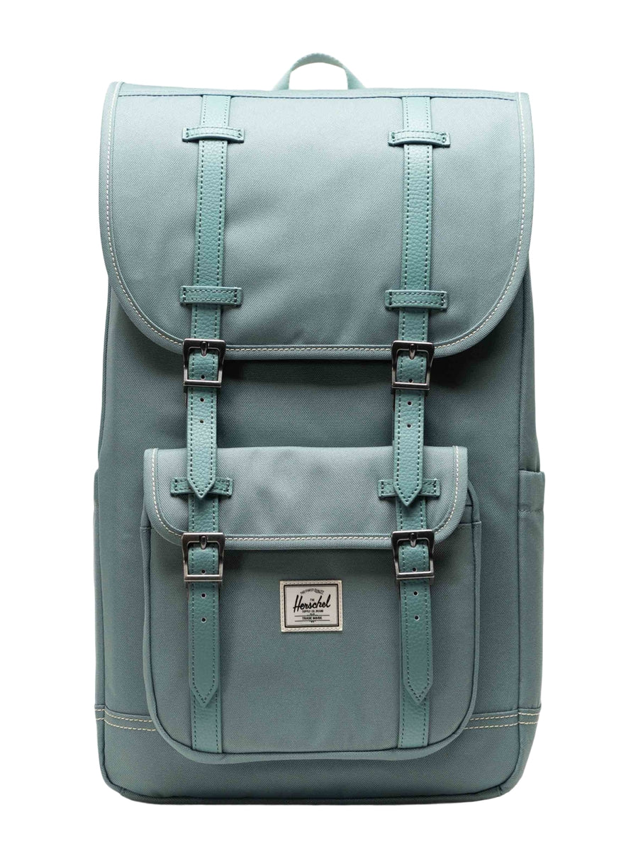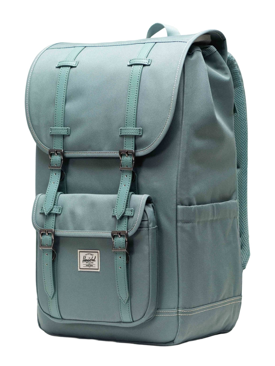 -EcoSystem 600D Fabric made from 100% recycled post consumer water bottles -Tonal stripe EcoSystem Liner made from 100% recycled post consumer water bottles -Padded and fleece lined floating sleeve fits a 15in/16in laptop -easy U pull Drawcord closure -carry comfortably with Adjustable EVA Padded shoulder straps -Compatible with a sternum strap for added support -magnet fastened straps with metal pin buckles -back entry zipper offers easy access -Dual water bottle pockets expand to Fit different sizes -top lid pocket with key clip -Zippered Front pocket -Put Yourself Out There internal label
