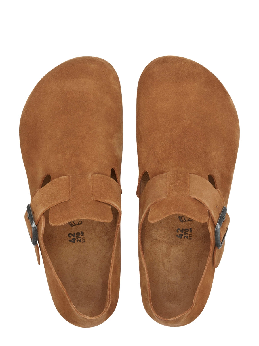 The BIRKENSTOCK London is a variation on the classic Boston shoe. The raised heel section is characteristic of this simple low shoe with no stitching. It boasts a natural, rustic look and an open-selvage, unlined finish. Its natural design is also down to the upper made from especially soft suede, which hugs the foot like a second skin.