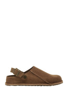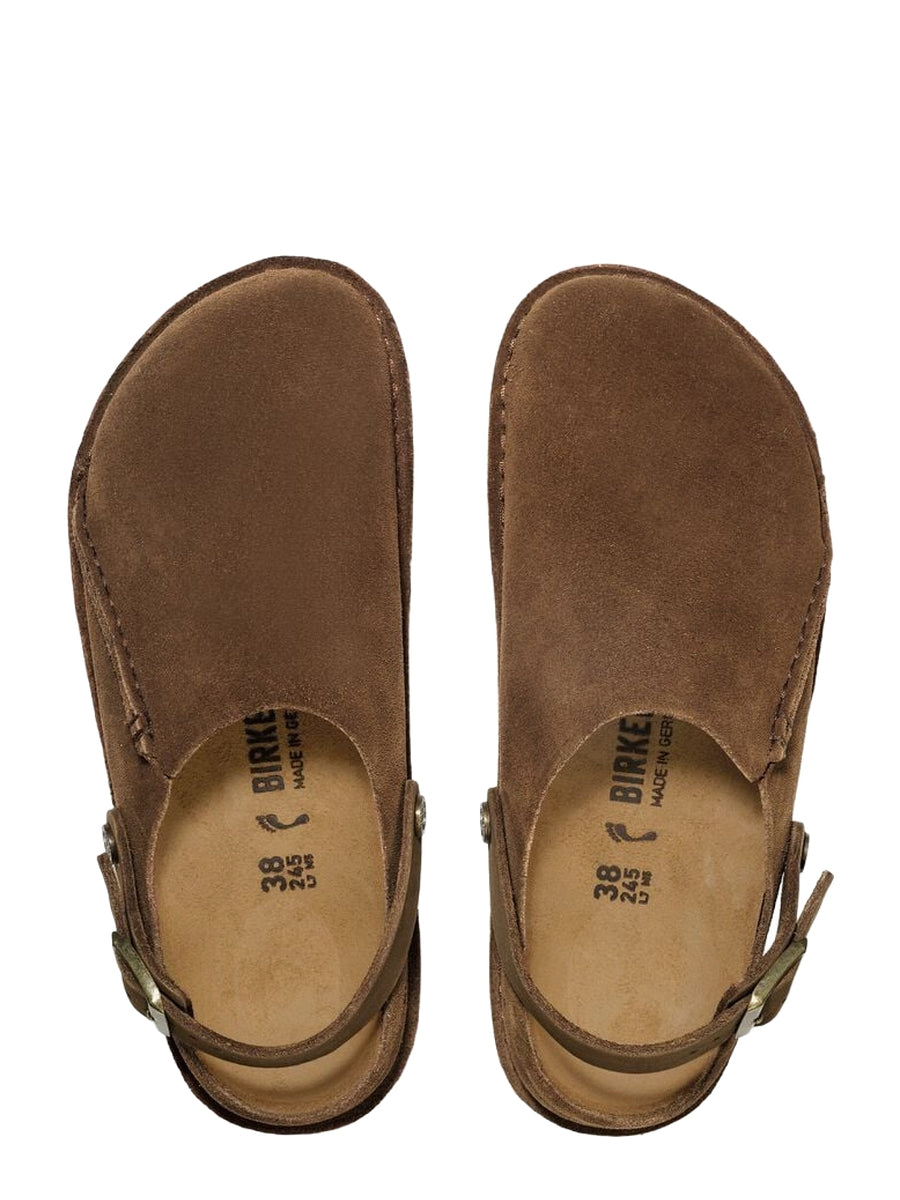 The BIRKENSTOCK Lutry is a slipper that can be worn as a backstrap style or as an open clog thanks to the flexible ankle strap. The footbed can be removed so that you can choose between three different footbed versions. This basic version of this design features our Standard Footbed. It replicates the natural print made by a foot walking on sand and will see you through the day in comfort. Its natural design is down to the upper made from especially soft suede, which hugs the foot like a second skin.