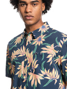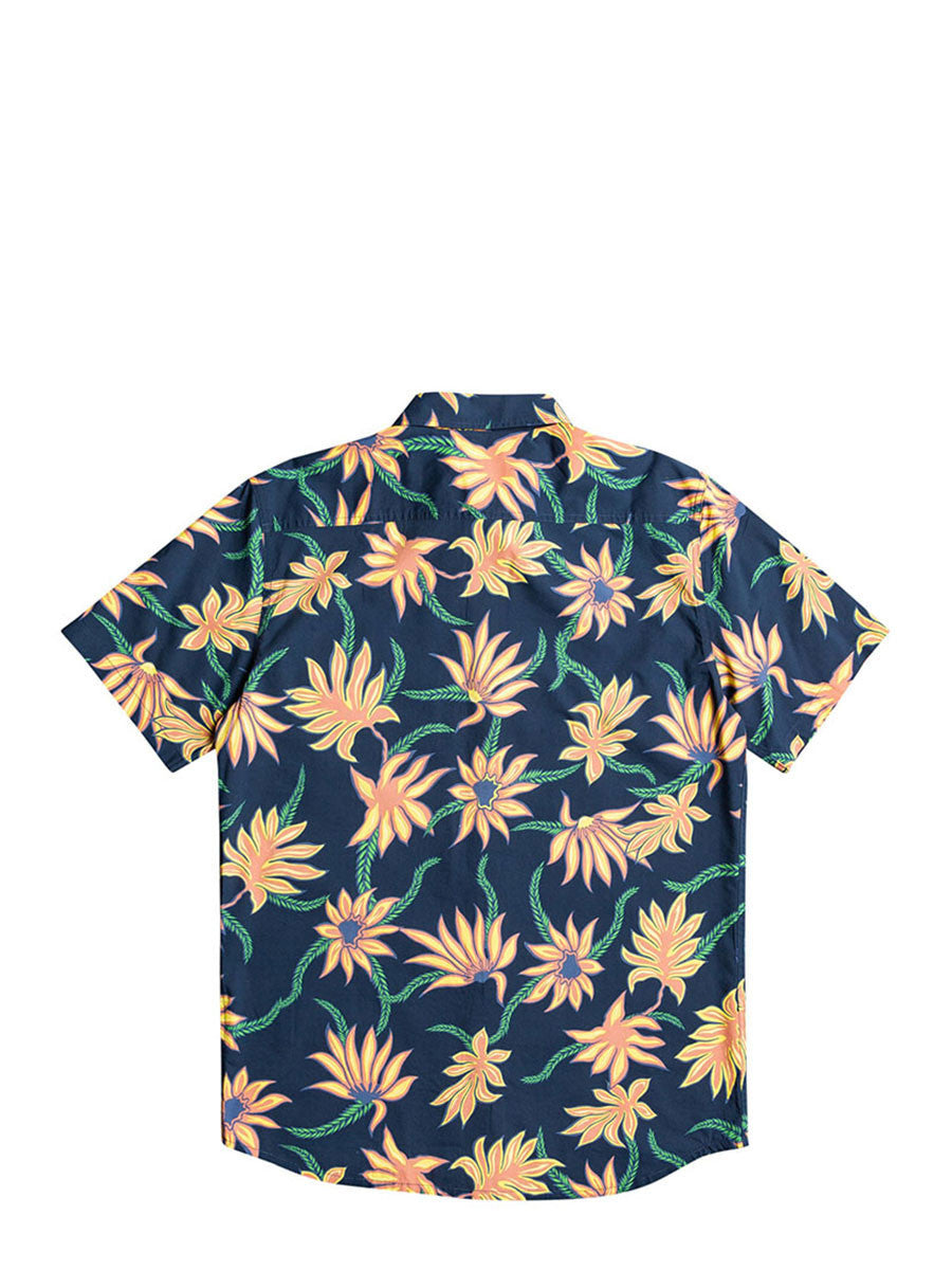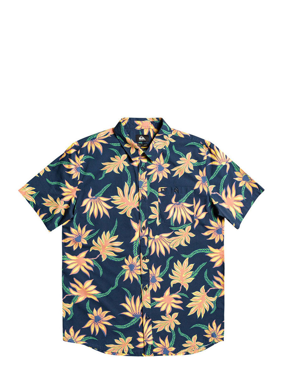 Quiksilver Mens Mystic Beach Short Sleeve Shirt - Short Sleeve Shirt for Men. Features include: Fabric: Cotton, viscose blend fabric [115 g/m2], Fit: Classic, comfortable regular fit, Curved hem, Closure/neck: Regular button closure, Chest pocket, All-over printed design.