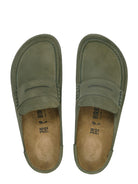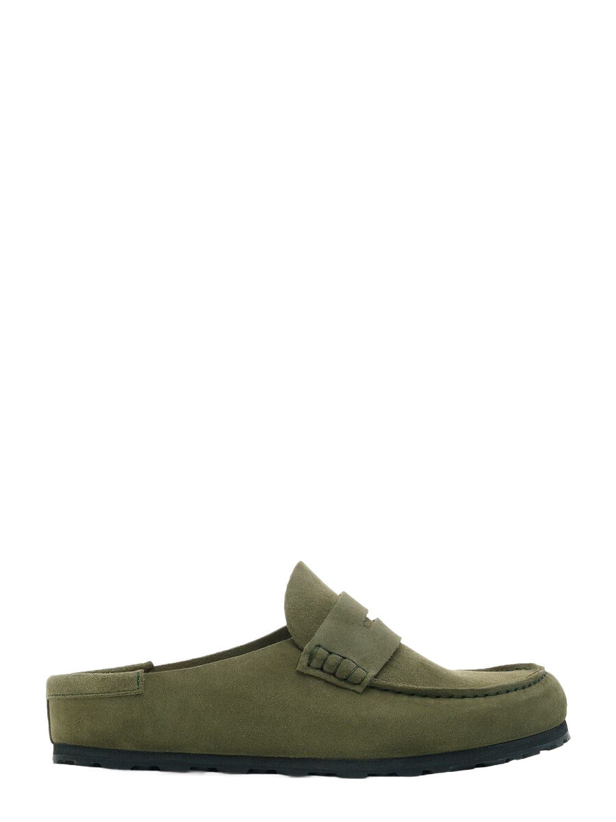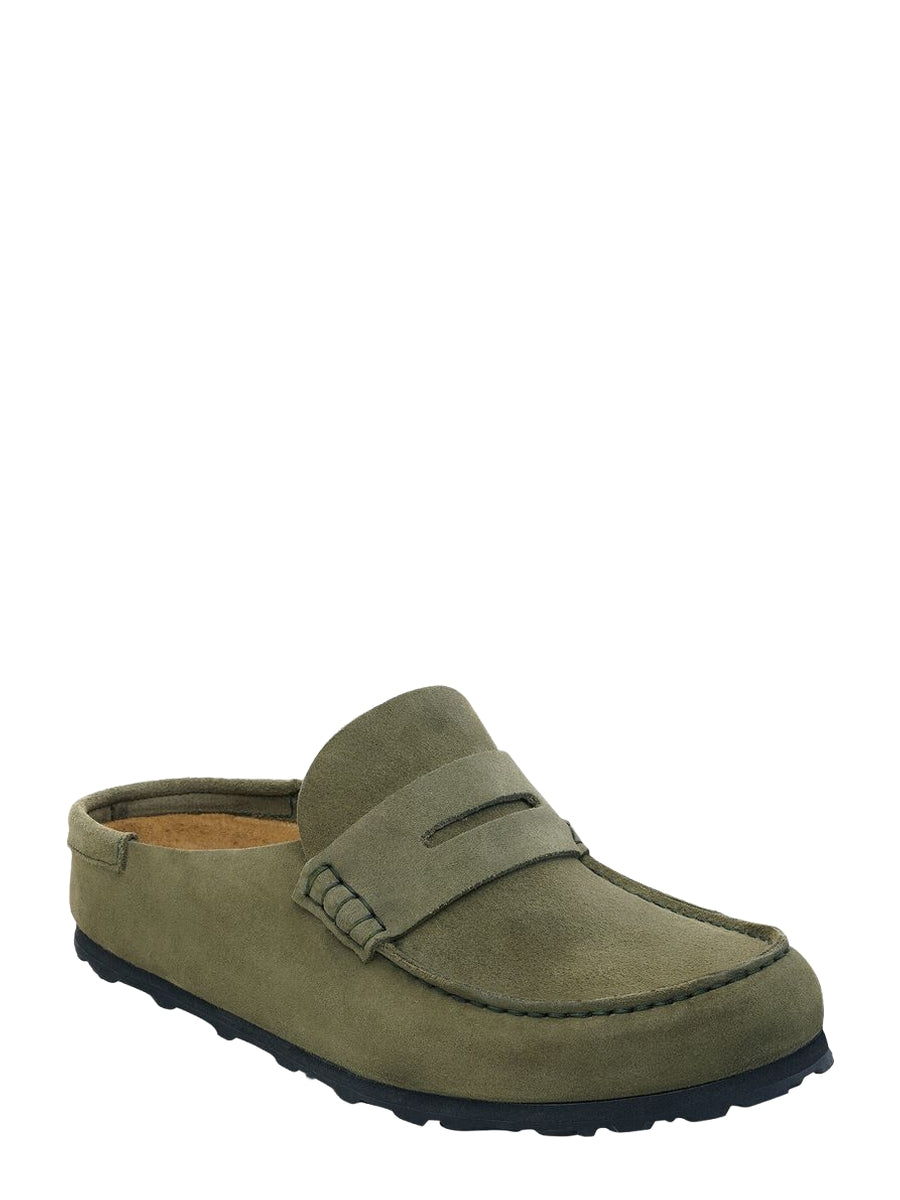 The BIRKENSTOCK Naples Wrapped is the closed version of the popular semi-open Buckley clog. The moccasin style with striking stitching lends this sandal a distinctive and masculine appearance. Thanks to its two components, the sole promotes a firm and comfy footing. It comprises a cushioning midsole made from EVA and an outsole made from genuine rubber. Its natural design is down to the upper made from especially soft suede, which hugs the foot like a second skin.