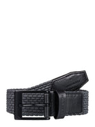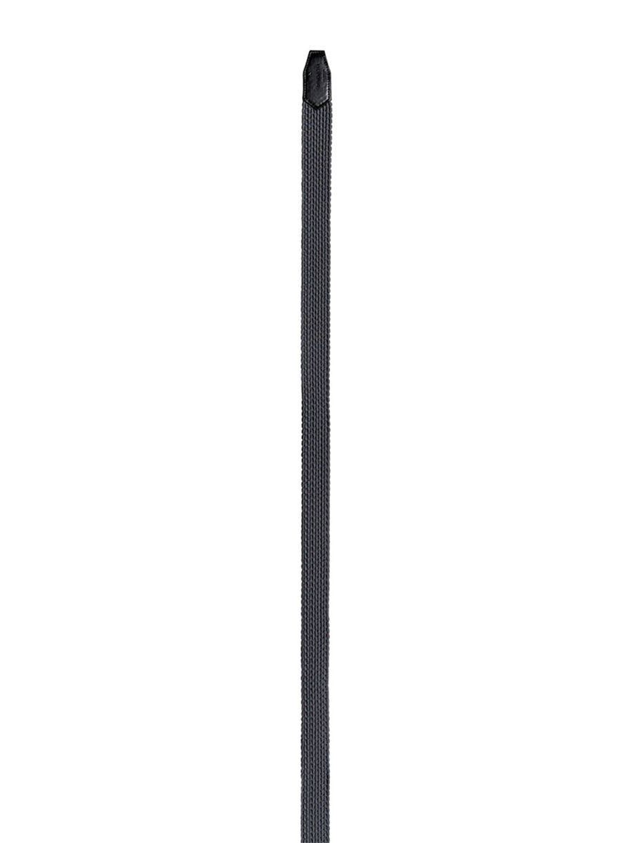 Features braided webbing strap with leather details. Embossed logo buckle. Composition: 100% Polyester.