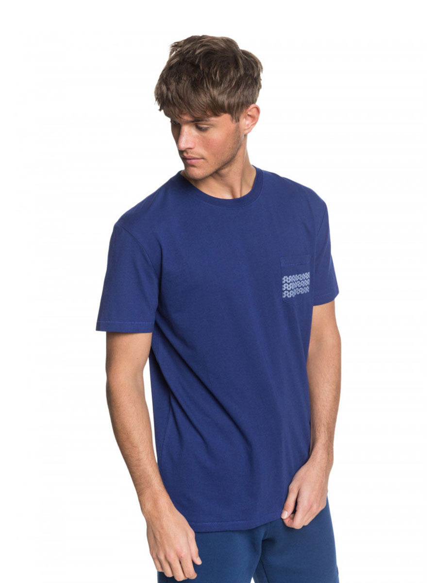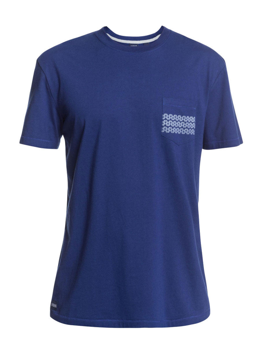 Men's pocket t-shirt featuring recycled organic cotton and recycled polyester fabric, rib knit on the collar, and finished with a classic, comfortable regular fit.