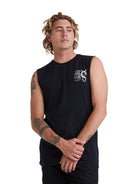 Muscle Shirt for men featuring cotton jersey fabric, and a sleeveless muscle fit. Complete with a crew neckline.
