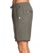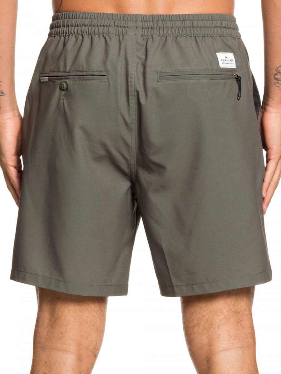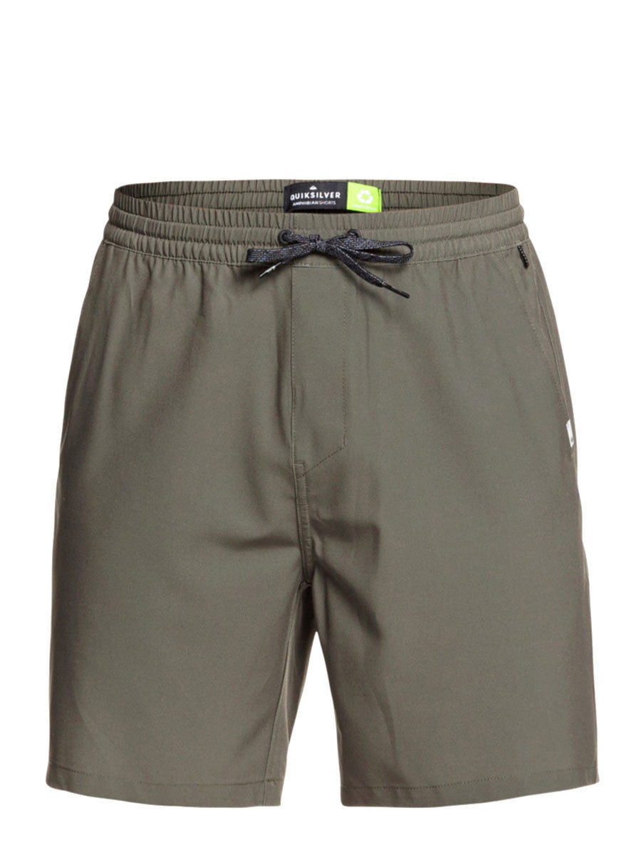 Men's amphibian board shorts featuring recycled Repreve 4-way stretch polyester made from plastic bottles, DryFlight water-repellent hydrophobic coating, and finished with an 18" outseam for a short length.