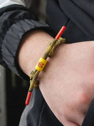 100% polyester. One size fits most wrists, 6" to 7.5" wrist circumference.