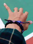 100% polyester. One size fits most wrists, 6" to 7.5" wrist circumference.