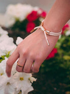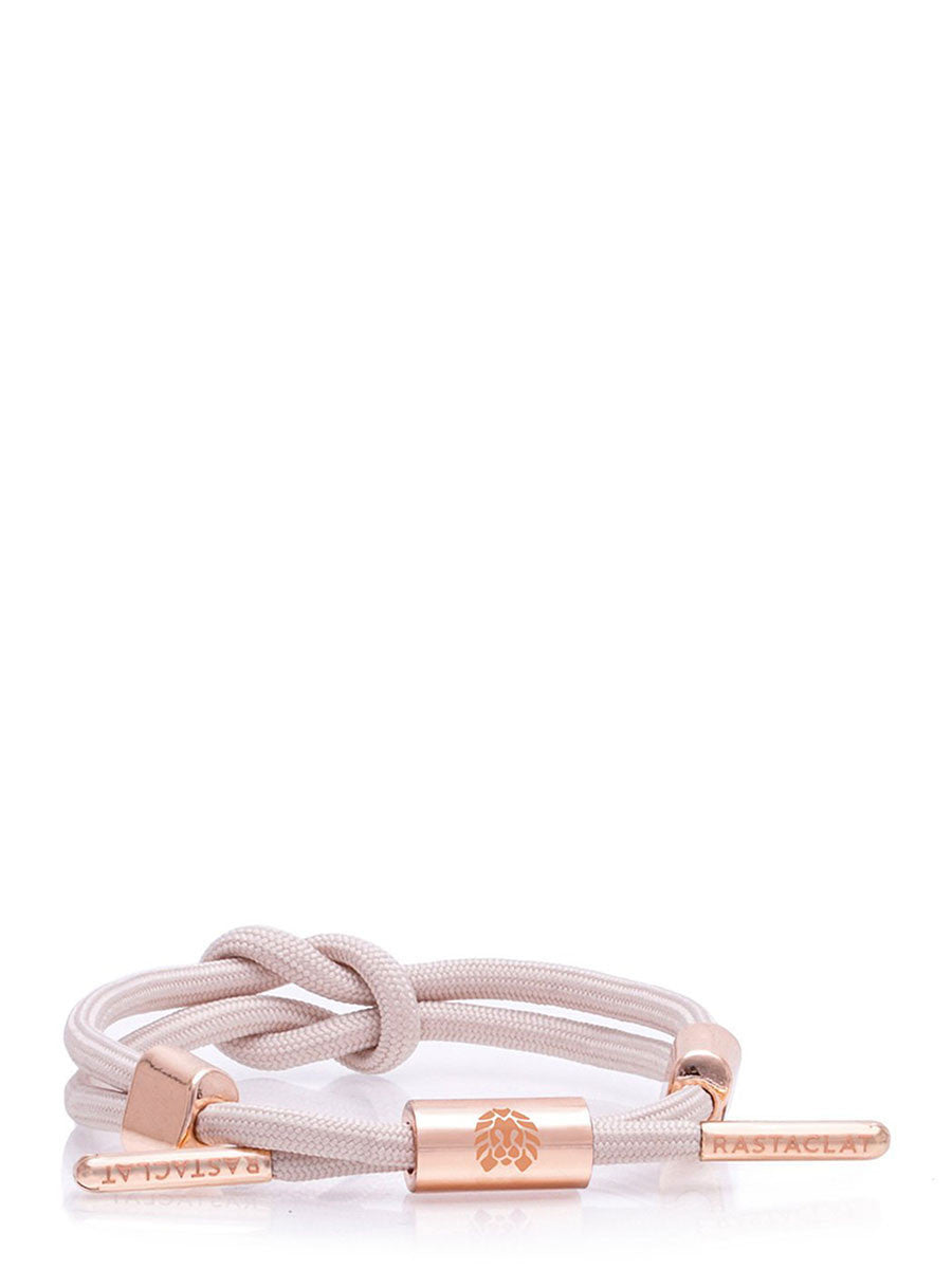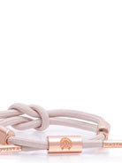 Nude small knotted bracelet featuring rose gold electroplated hardware and contrast emblems.