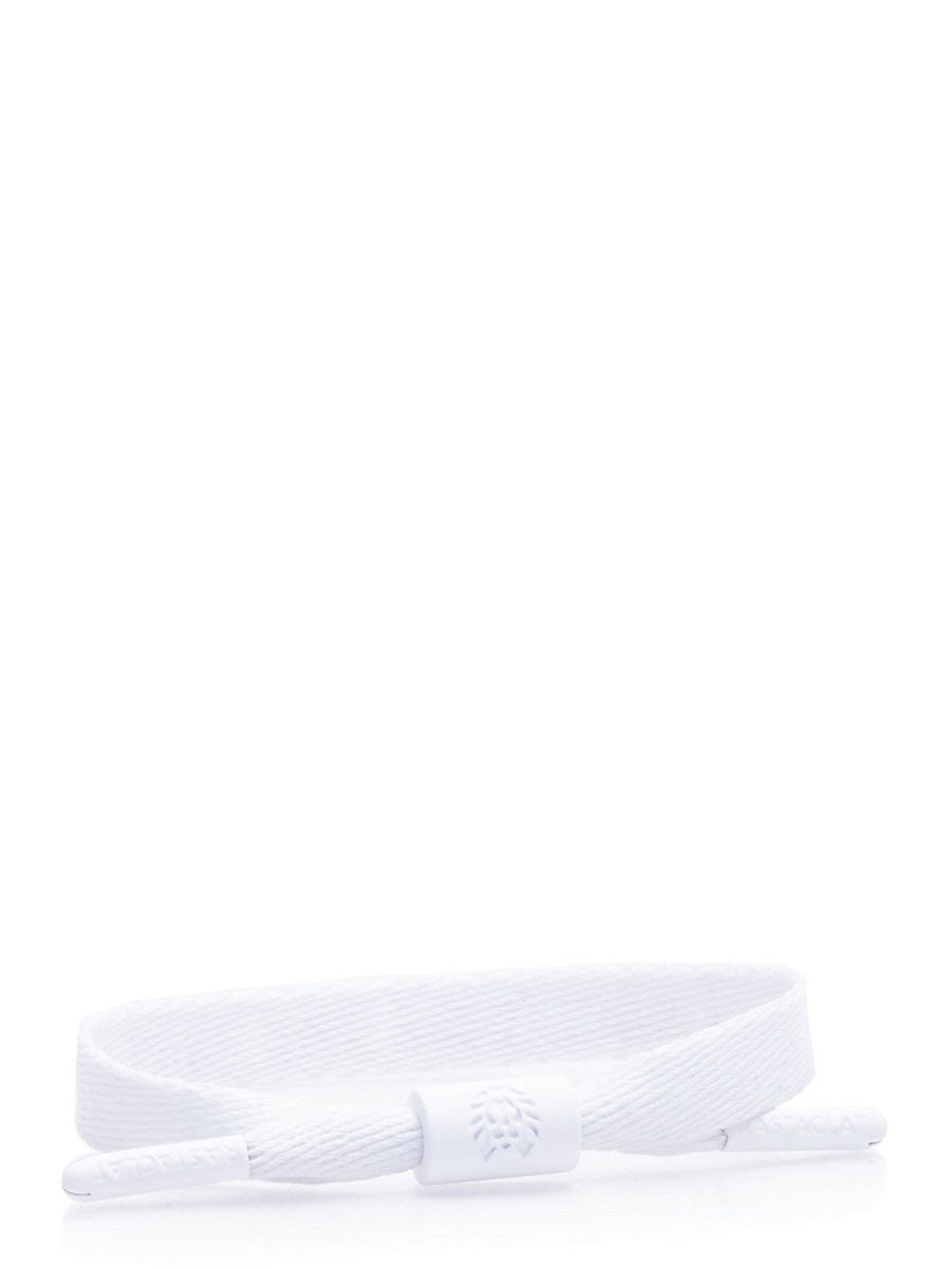 White single lace style with silicone raised-type, complete with soft-hand finish hardware. 100% polyester. One size fits most wrists, 6" to 7.5" wrist circumference.
