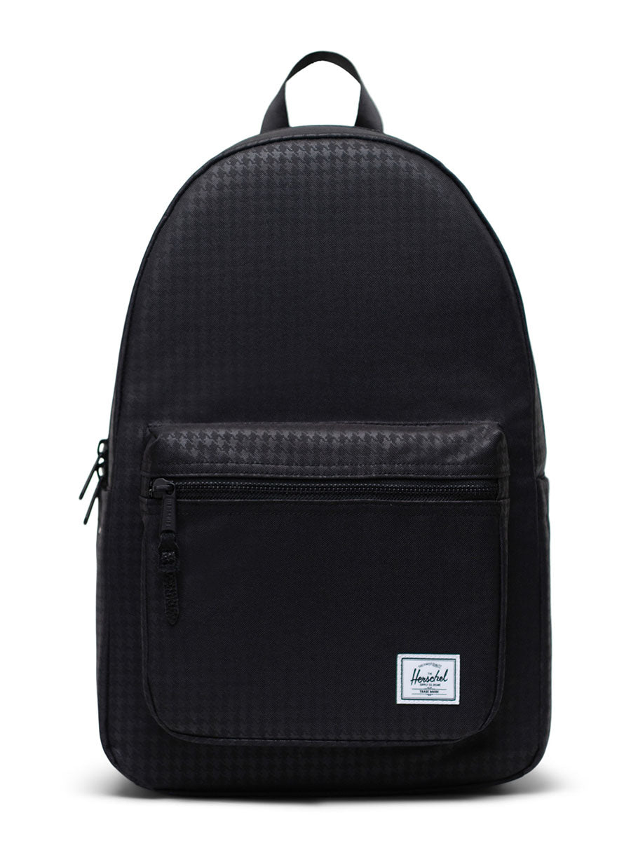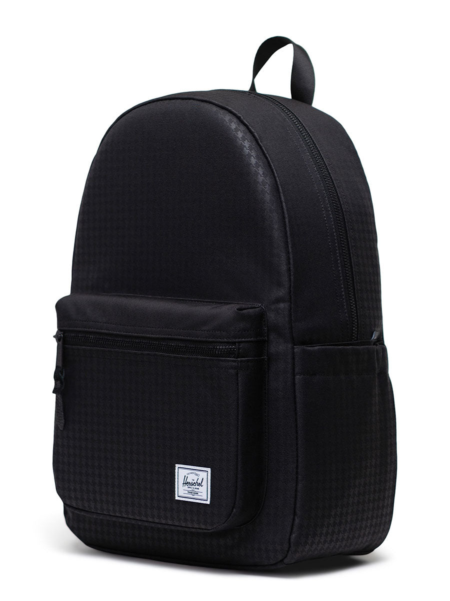 - -EcoSystem™ 600D Fabric made from 100% recycled post-consumer water bottles -Tonal stripe EcoSystem™ Liner made from 100% recycled post-consumer water bottles -Padded floating sleeve fits a 15"/16" laptop -Zippered closures -Carry comfortably with EVA-padded shoulder straps -Water bottle pocket expands to fit different sizes -Side storage sleeve for quick-reach items -Keep essentials in place with a front pocket organizer and key clip -Herschel Supply DNA shoulder tab -Put Yourself Out There™ internal label -Internal Herschel Supply stripe DNA tab