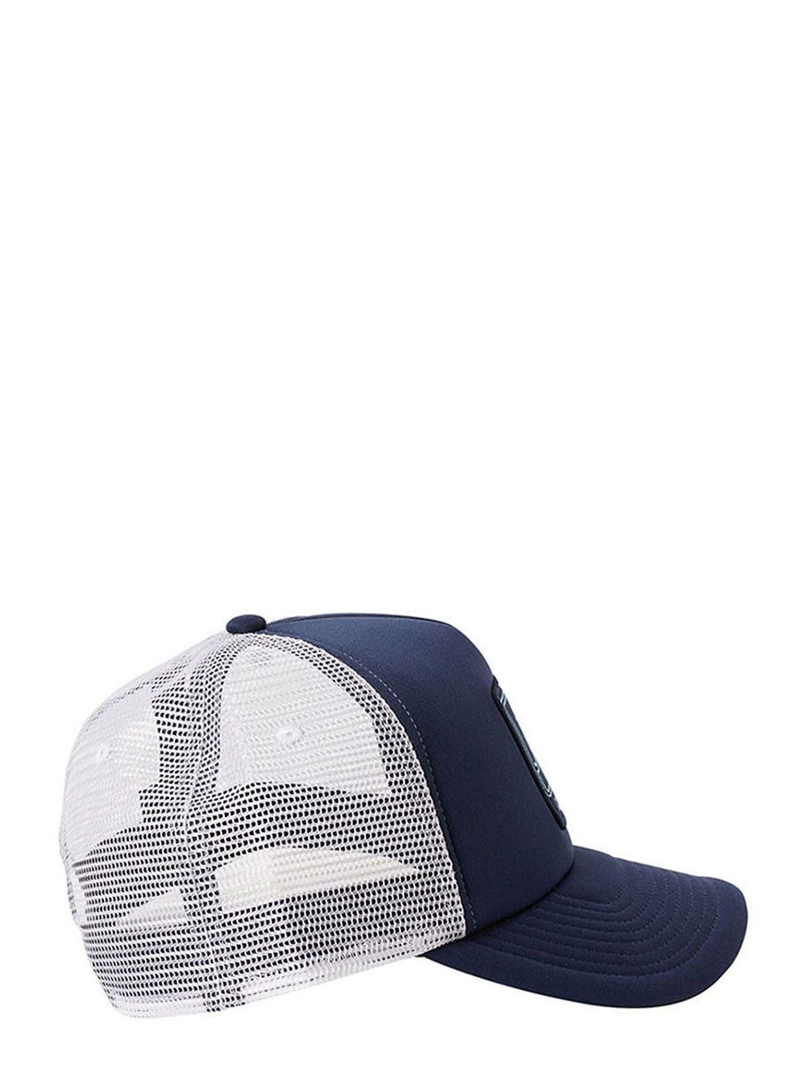 Trucker Cap for Men. Features include: 5 Panel structured trucker cap; Foam front panels; Woven patch at center front; Rear woven label at closure.